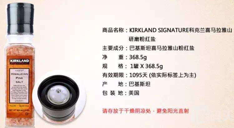 | 产品英文名 | Kirkland Signature Himalayan Pink Salt 369g |