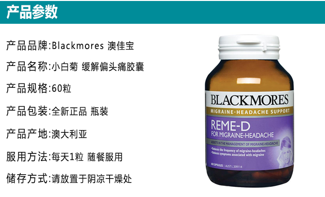 | 产品名 | Blackmores 澳佳宝 小白菊缓解偏头痛胶囊 60粒 |
