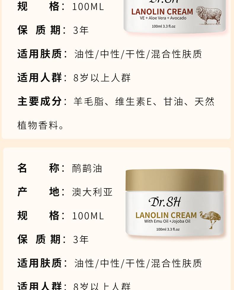 Dr. SH 抗皱绵羊油 100ml 含鸸鹋油荷荷巴油维生素E