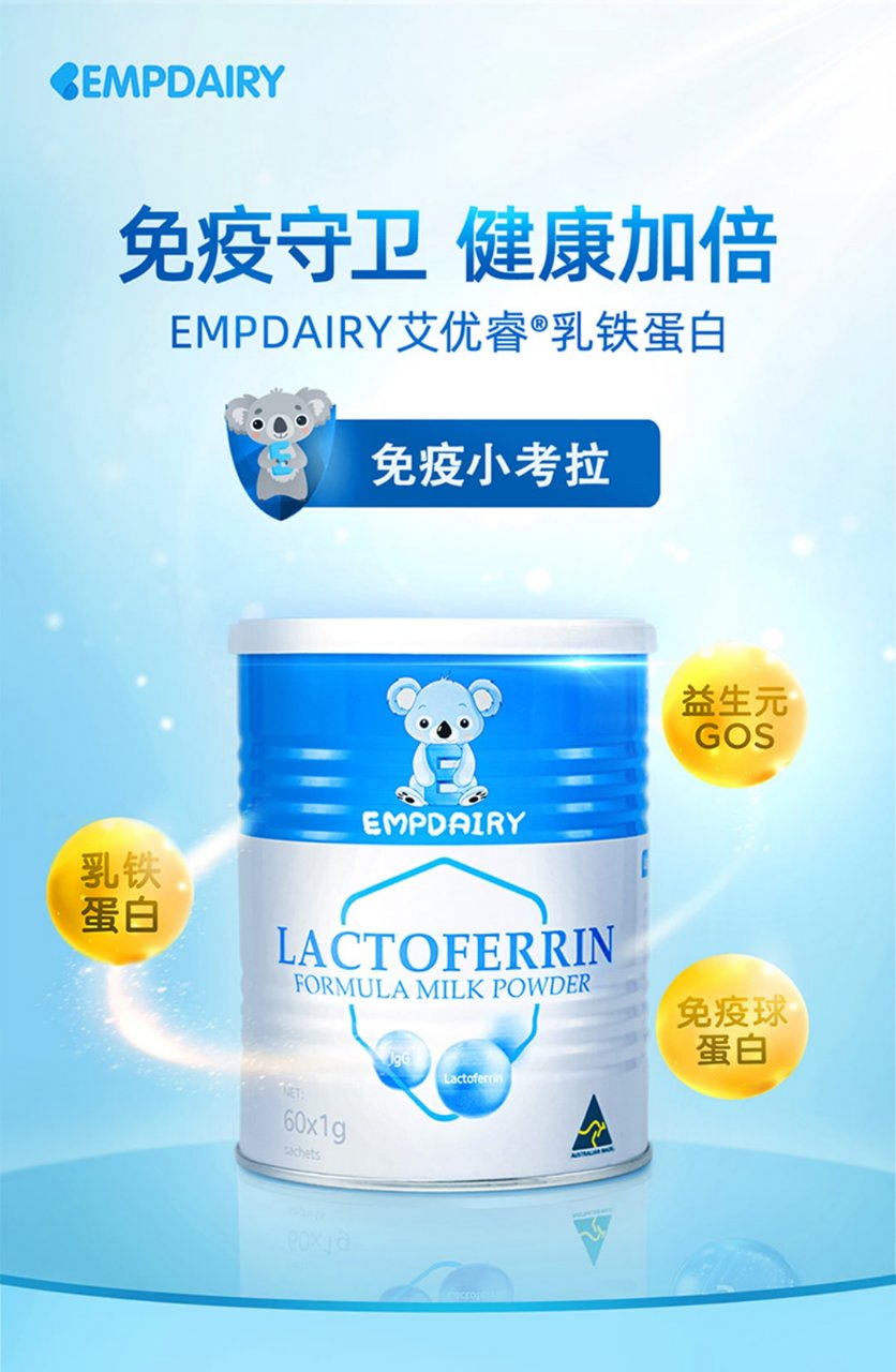 Empdairy 艾优睿乳铁蛋白60g :源于澳洲百年制药厂,研发专为0~12岁儿童定制高端乳铁蛋白补充剂。