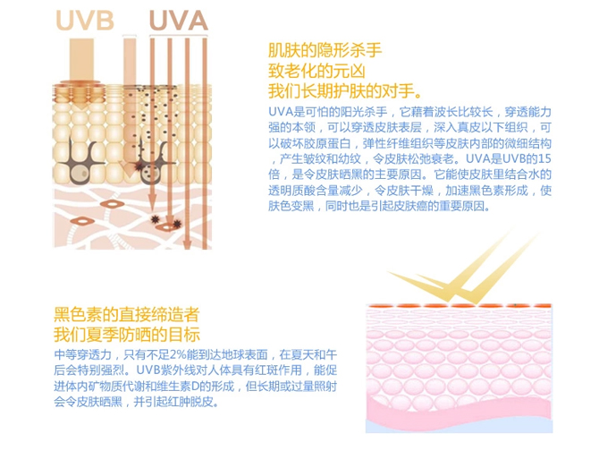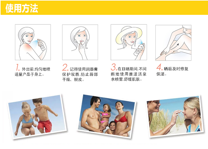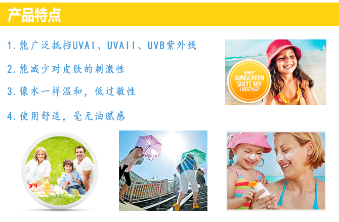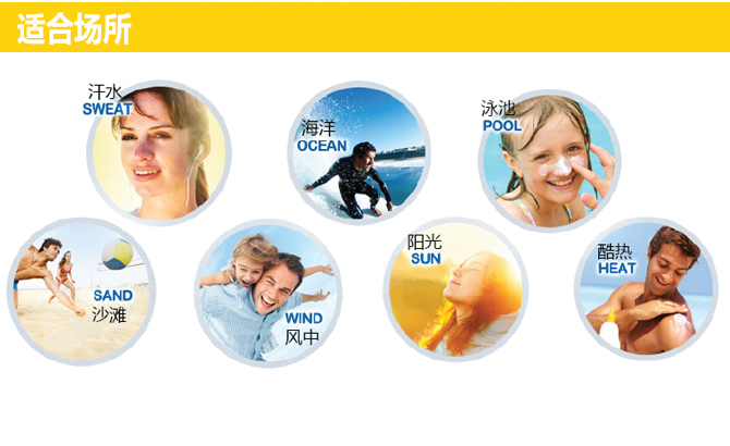 | 特别说明 | 均匀地涂在肌肤上,涂后15分钟才暴露在太阳下,游泳、抹身或隔一段时间应重覆涂抹以达至最佳防晒效果。 |