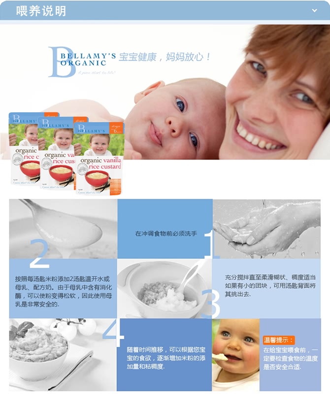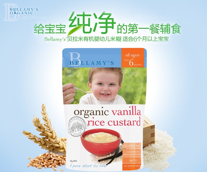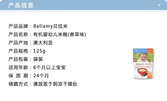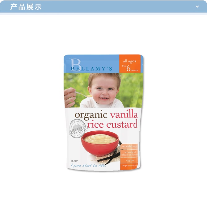 | 产品名 | Bellamy's 贝拉米 有机婴幼儿米糊 香草蛋奶 125g |