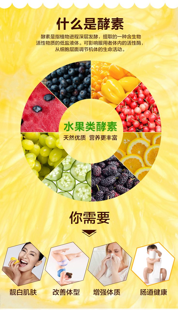 酵素,也就是酶。酶是人体内新陈代谢的催化剂,只有酶存在,人体内才能进行各项生化反应。人体内酶越多,越完整,其生命就越健康。酶使人体所进食的食物得到消化和吸收,并且维持内脏所有功能包括:细胞修复、消yan排du、新陈代谢、提高免疫、产生能量、促进血液循环,酶主宰了内脏和细胞的功能,没有酶就没有生命!
