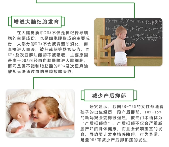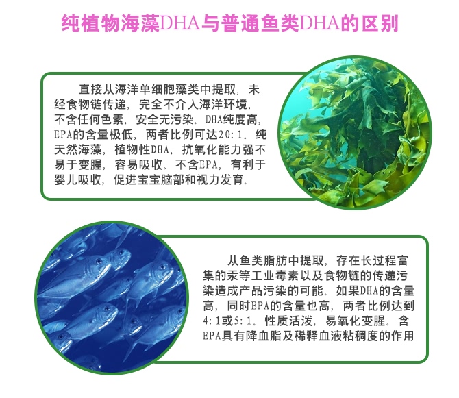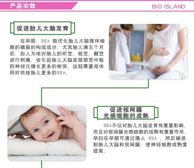 【运输途中气温变化可能导致产品融化,建议走EWE,如遇融化,签收72小时内提供破损物品与外包装合照(需清晰识别面单),可向EWE申请售后理赔,我司不参与理赔】DHA是宝宝眼睛和大脑发育所需要的蛋白质。宝宝眼睛在胎儿阶段发育完成,大脑的发育则持续到宝宝2岁。宝宝DHA的摄入是通过怀孕期取自母体,以及出生后取自母乳。母亲不能自己生产DHA,所有DHA是从食物中来的。现代人的饮食里, DHA的摄取量远远不能满足需要。一个怀孕和母乳喂养的妈妈,每天需要摄入300毫克的DHA。在美国的研究发现,孕妇们的平均摄入量是在50毫克左右,这之间的差距,需要从别的来源补充。