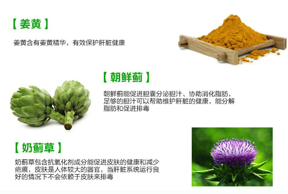 产品描述Bioisland 护肝片 200 粒 产品介绍: 这种高强度护肝胶囊包含:乳蓟草、姜黄和牛磺酸,帮助支持健康的消化和肝功能。姜黄和牛磺酸有助于慢性肝炎病毒患者降低干细胞受损率及癌变,帮助调节胆汁分泌,帮助消化脂肪,并且还能改善肝功能,解酒排毒,养肝护肝。 奶蓟草——排毒护肝 奶蓟草拥有2000年的肝胆疾病药草的历史,早在澳洲土著人时期就已开始服用奶蓟草来养护健康。在20世纪60年代,医学家在澳洲土著人的血清中发现一种特殊的抗原物质,经研究来自于奶蓟草,从而印证出奶蓟草的保肝功效。此外,奶蓟草也经常在欧洲和英国作为解酒药方,因为它有助于肝脏代谢毒素,减少对肝脏的损害。 奶蓟有助于支持健康细胞的生长和维持肝功能正常。它是一种强大的抗氧化剂,可以保护肝脏免受毒素、肝脏疾病和病毒的伤害。 牛磺酸——强肝利胆 牛磺酸有强肝利胆作用,增强机体免疫力,防止心肌损伤,保护肝脏,能够促进急性肝炎恢复正常。 姜黄——解酒护肝 姜黄中含有的姜黄素具有抑制肝炎、修复损伤的肝细胞、改善肝脏实质损伤等功效。姜黄提取物、姜黄素、挥发油、姜黄酮以及姜烯、龙脑和倍半萜醇等,都有利胆作用,能增加胆汁的生成和分泌,并能促进胆囊收缩,其中又以姜黄素的作用最强。 适用人群: