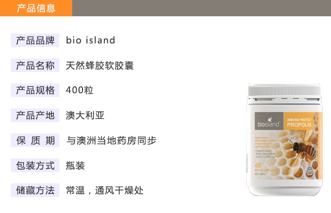 | 英文名称 | Bio Island Immune Protect Propolis 400 Capsules |
