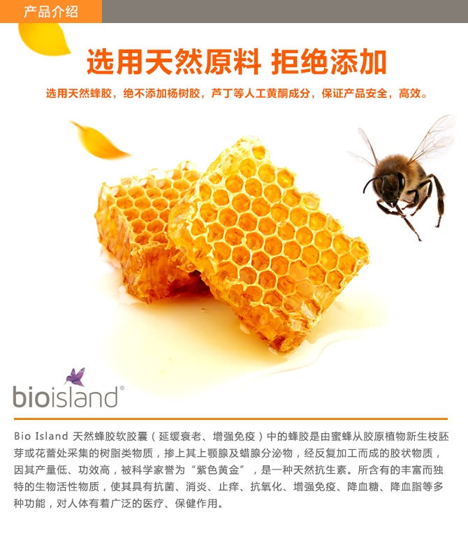 | 产品名 | Bio Island 天然蜂胶软胶囊 2500mg 400粒 |