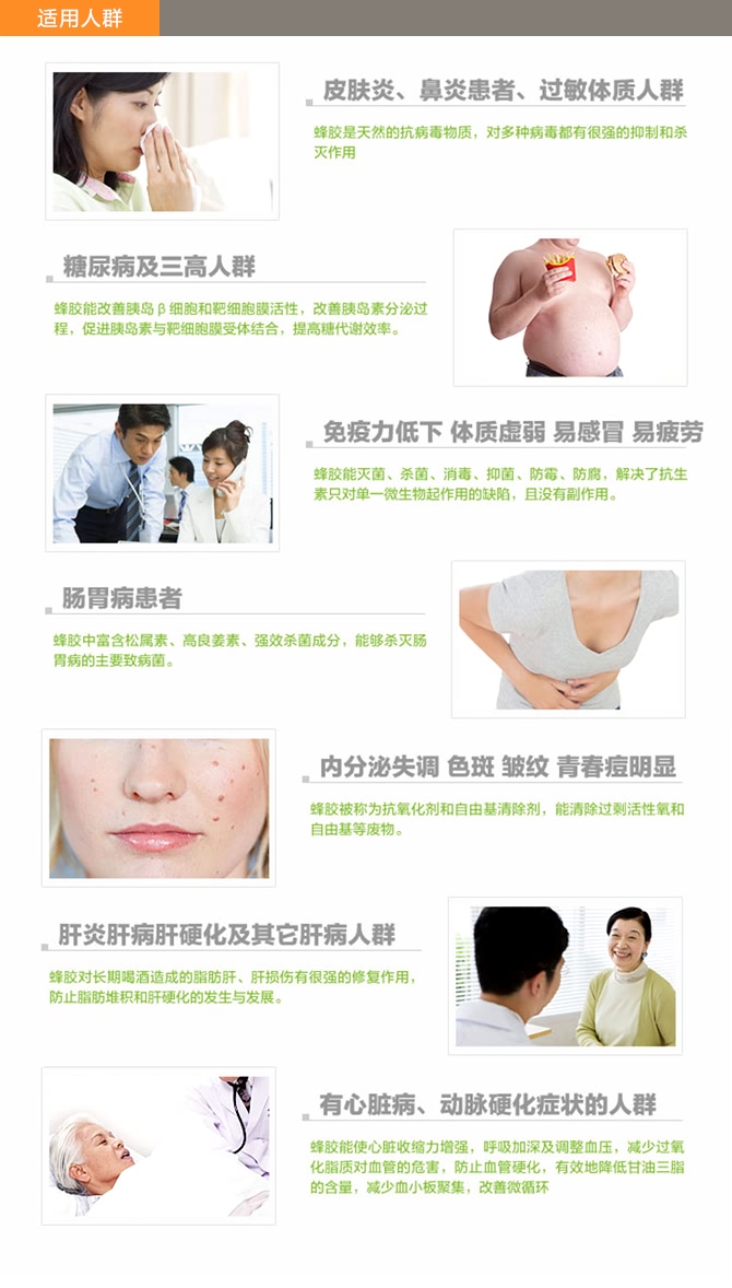 | 适用人群 | 需提高人体免疫力的人群; 各种呼吸道疾病,如易感冒(病毒或细菌性,适合初期的感冒),早上起床打喷嚏/流鼻水/肺部弱,消化不良,胃肠炎症及溃疡等人群; 烟酒过多,多应酬,压力大,经常外出公干或旅行人士; 各种细菌性疾病,病毒性肝炎等皮肤问题,口腔炎,喉咙痛; |