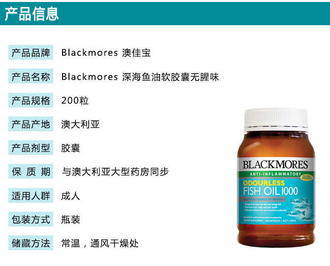 | 产品名 | Blackmores 澳佳宝 深海鱼油软胶囊无腥味 200粒 |