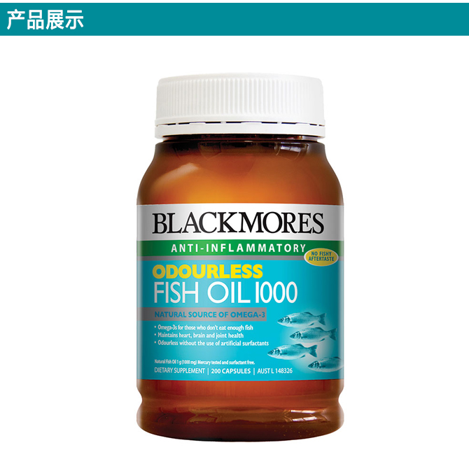 | 英文名称 | Blackmores Odourless Fish Oil 1000mg 200 Capsules |