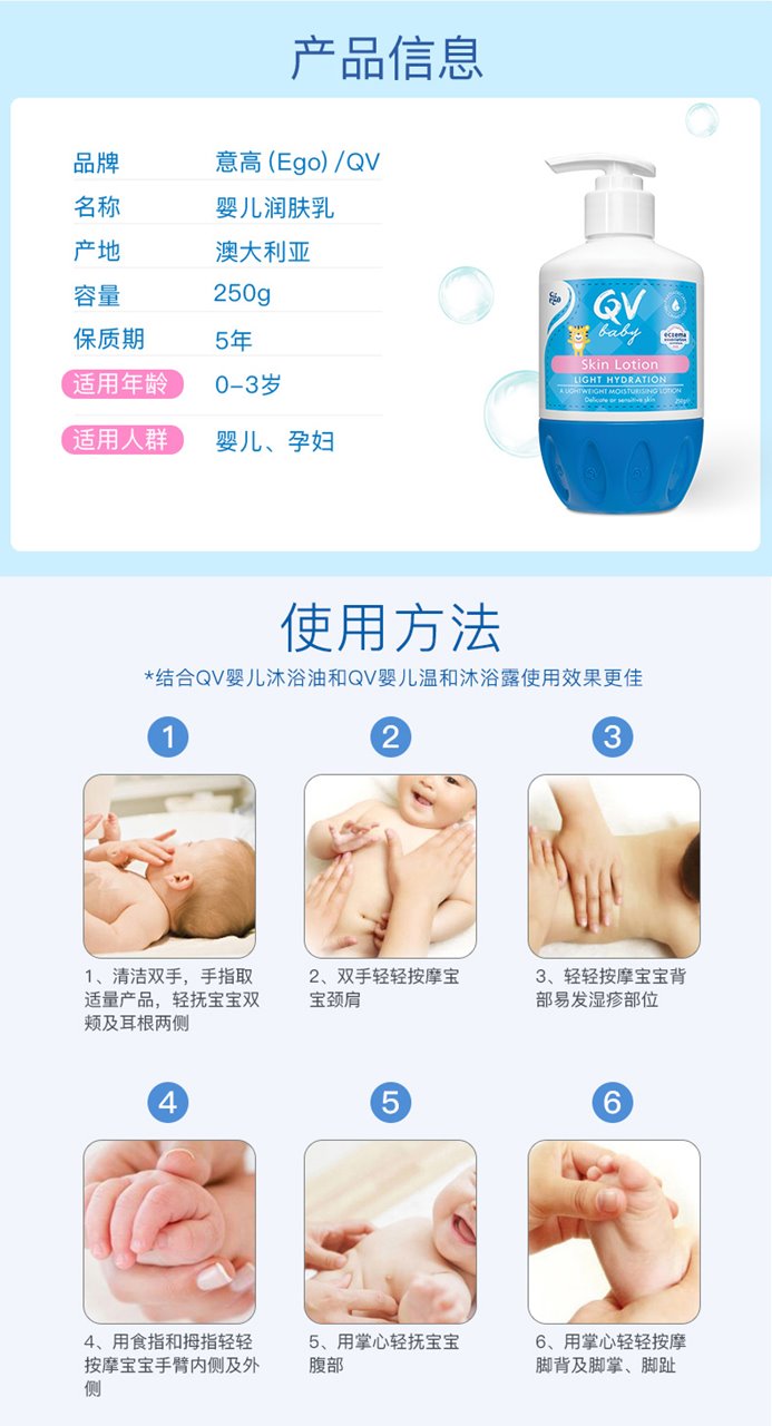 Ego QV 桃子虎婴儿保湿润肤乳 按压头 250g宝宝补水身体乳孕妇可用轻薄面霜