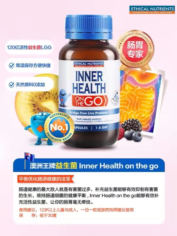 Inner healthy on the go,是一款不用放冰箱的益生菌,它可以: