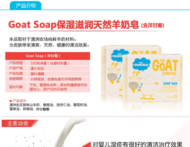 | 英文名称 | Goat Soap with Chiamomile 100g |
