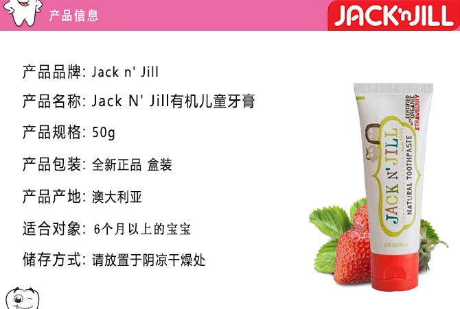Jack N' Jill 儿童天然无氟牙膏 草莓味 50g
