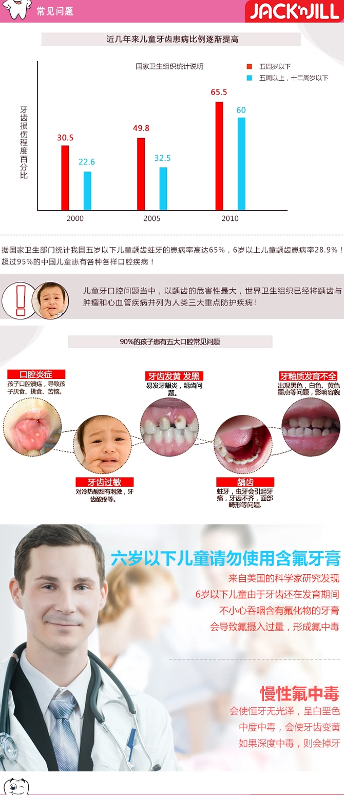 1至2岁是恒牙胚发育的重要时期,摄入过量的氟会影响孩子将来六龄牙及门牙的外形结构,轻则出现斑点,重则发育畸形。因此儿童在3岁前并不适合含氟牙膏。本产品全天然成分,低过敏性,无氟、无防腐剂,含金盏花和天然木糖醇抽取物, 能有效预防牙龈和牙菌膜滋生,保持口腔清洁,成为许多澳洲妈妈的首选。