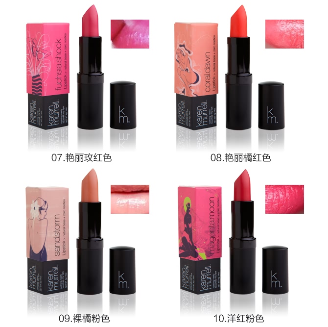 karen Murrell使用来自纯天然的原料制作这款口红,产品中不含任何的矿物油,不使用从动物身上提炼的材料,不使用防腐剂。有机的天然成分使口红散发着自然而柔和的香味,并有效滋润唇部肌肤,高质量的制作工艺使这款口红具有较好的显色度及持久性。