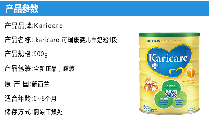 | 产品名 | Karicare 可瑞康婴儿羊奶粉1段 900g 0-6个月 适合过敏体质 |