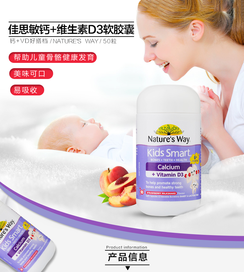 | 产品名 | Nature's Way 儿童液体钙胶囊+维生素D3 草莓口味 50粒 |