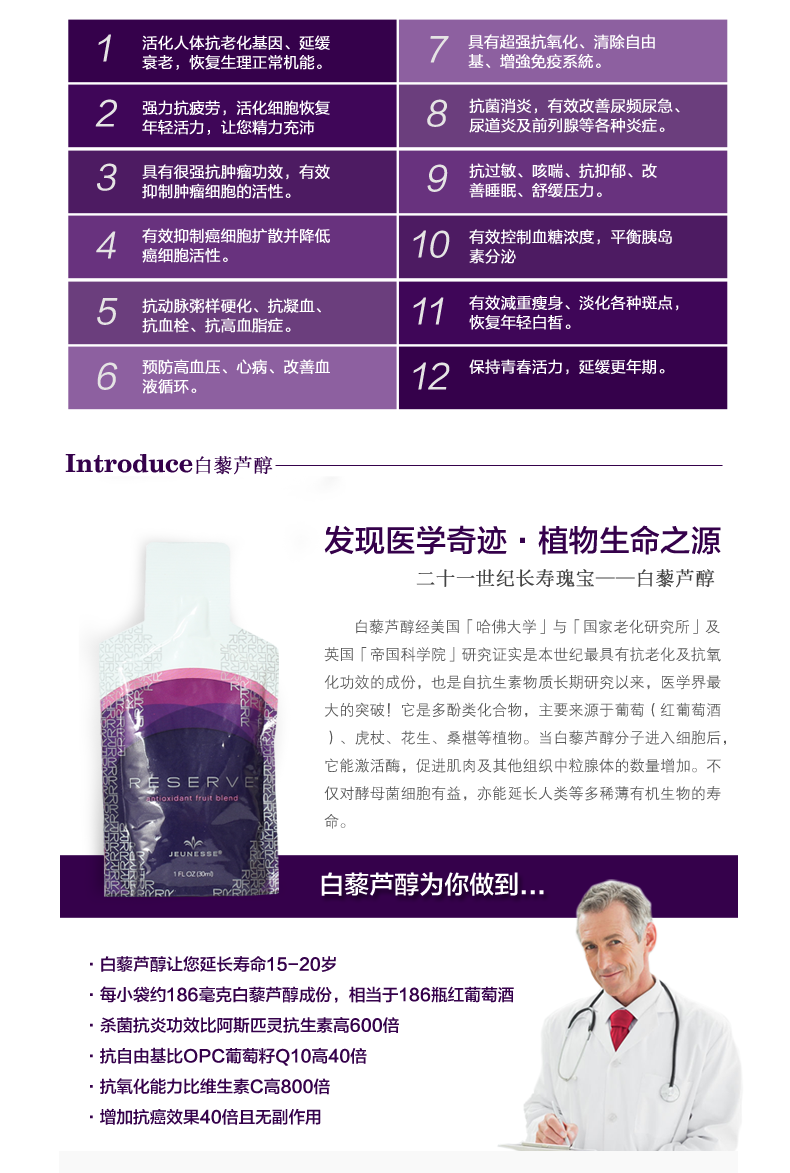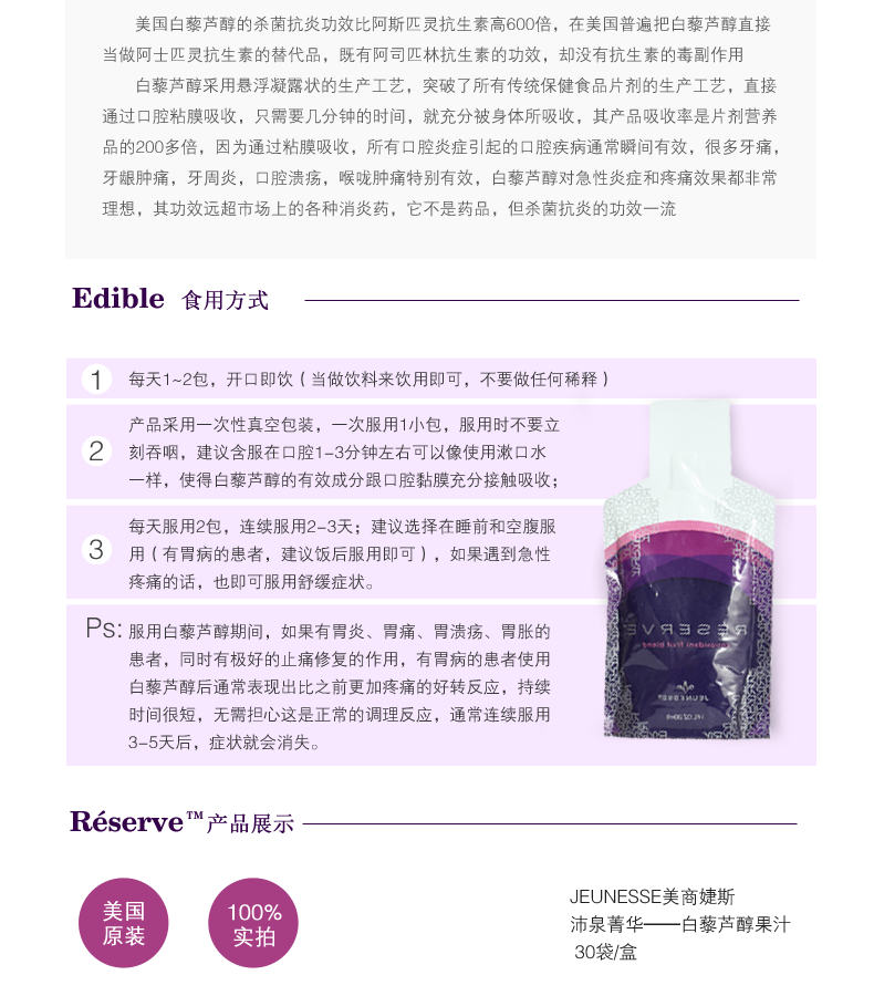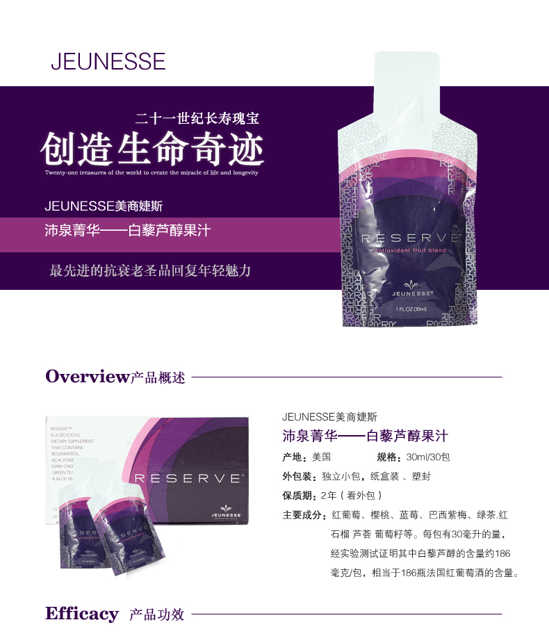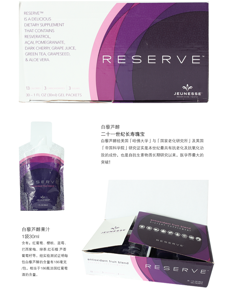美国美商婕斯 JEUNESSE 沛泉菁华醇沛泉精华白藜芦醇果汁 30包