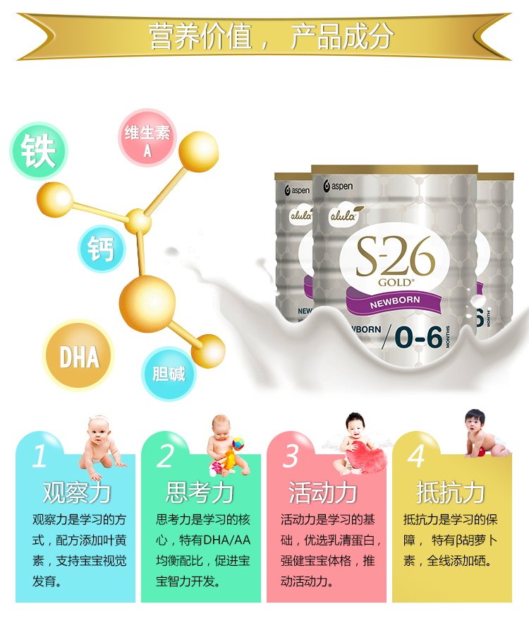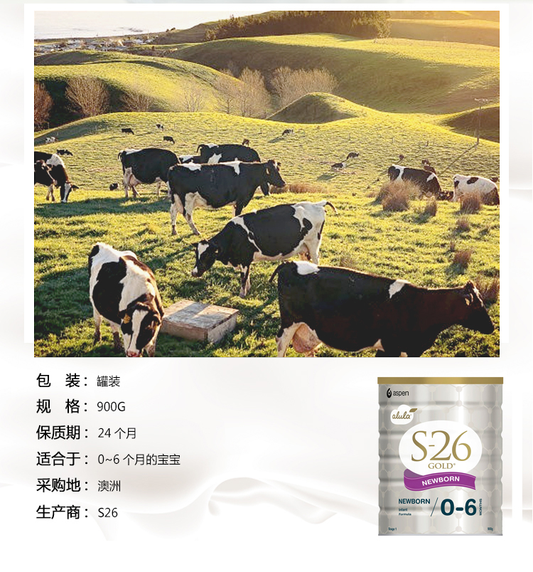 *51GO福利活动*国内现货S26婴幼儿配方奶粉段 现仅需$65一套3罐包邮啦!!!成本价回馈福利,暂不拆箱(新疆、西藏、内蒙等偏远地区除外)2020.12市面新鲜日期!!!所有国内现货均由51GO悉尼仓库发出,品质保证!!!成本价回馈福利,实时库存以客服回复为准,售完无补哦~请微信群内咨询下单!!!S26-1段奶粉针对0-6个月初生婴幼儿生长发育的营养需求研制,让宝宝初生期少生病,健康快速成长。新西兰惠氏 Wyeth S26金装牛奶粉容易促进宝宝睡觉,对于睡眠不好的宝宝此奶粉有很好的效果,该奶粉拥有新西兰奶粉清淡香醇的特点,口感是新西兰惠氏 Wyeth S26金装牛奶粉一贯的清淡醇厚。S26奶粉是第一个使用乳清蛋白的奶粉,是奶粉行业的领先者!