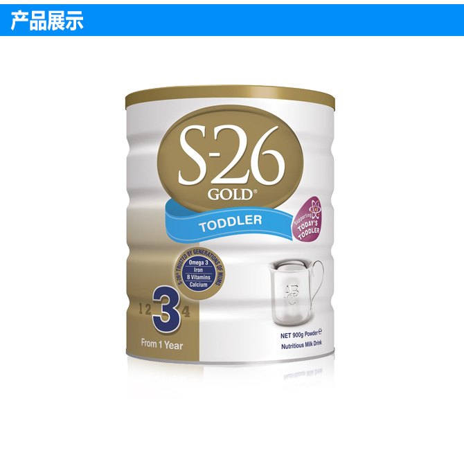 **仅1罐售完下架!日期到2020年11月**S26-3段它提供了幼儿成长必须营养素。营养丰富,富含a乳清蛋白,均衡比例的DHA和AA并添加叶黄素。营养均衡,含有24种幼儿所必需的维生素和矿物质,及天然胡萝卜素。作为健康膳食的一部分均衡营养的良好来源。每日健康膳食外加三份S-26,则幼儿的蛋白质、主要维生素和矿物质的摄入量,即可达到每日膳食营养素参考摄入量的百分之百。