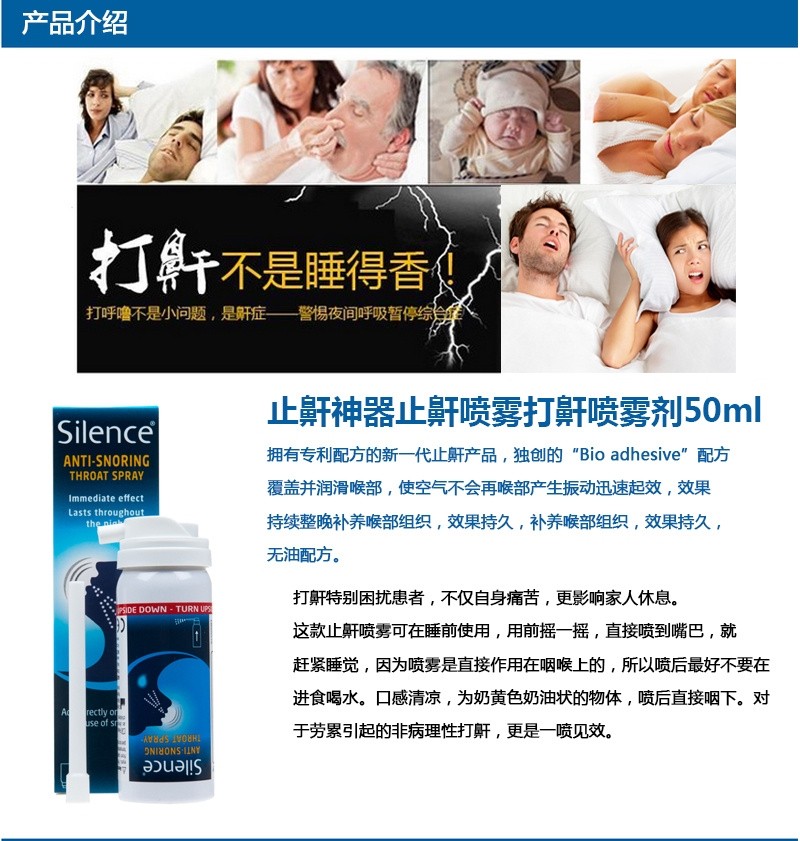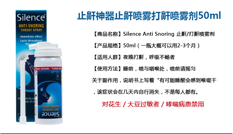 | 英文名称 | Silence Anti-Snoring Spray 50ml |