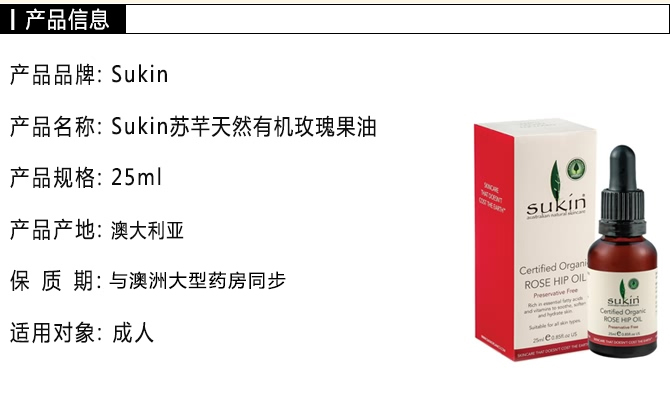 | 产品名 | Sukin 苏芊 天然有机玫瑰果油 25ml |