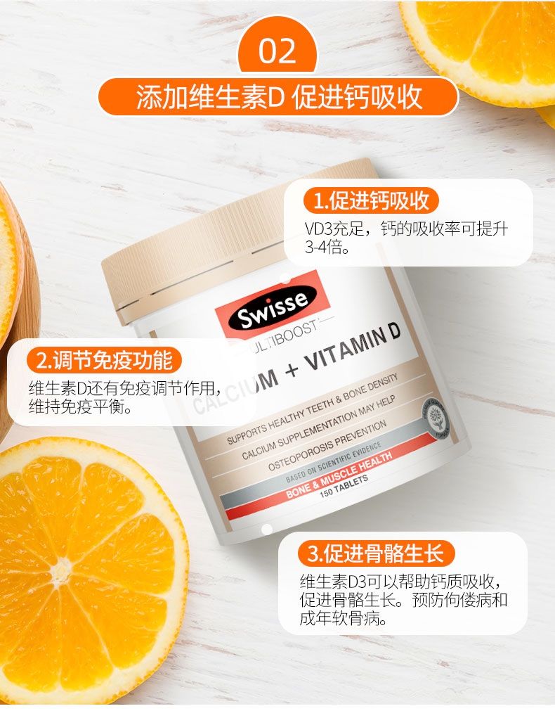 Swisse钙+维生素D片所使用的是优质的原料,帮助你有效补充钙质,保持骨骼和牙齿健康。Swisse钙+维生素D片使用的是优质钙来源:柠檬酸钙,以及天然维生素D3,增加钙的吸收。