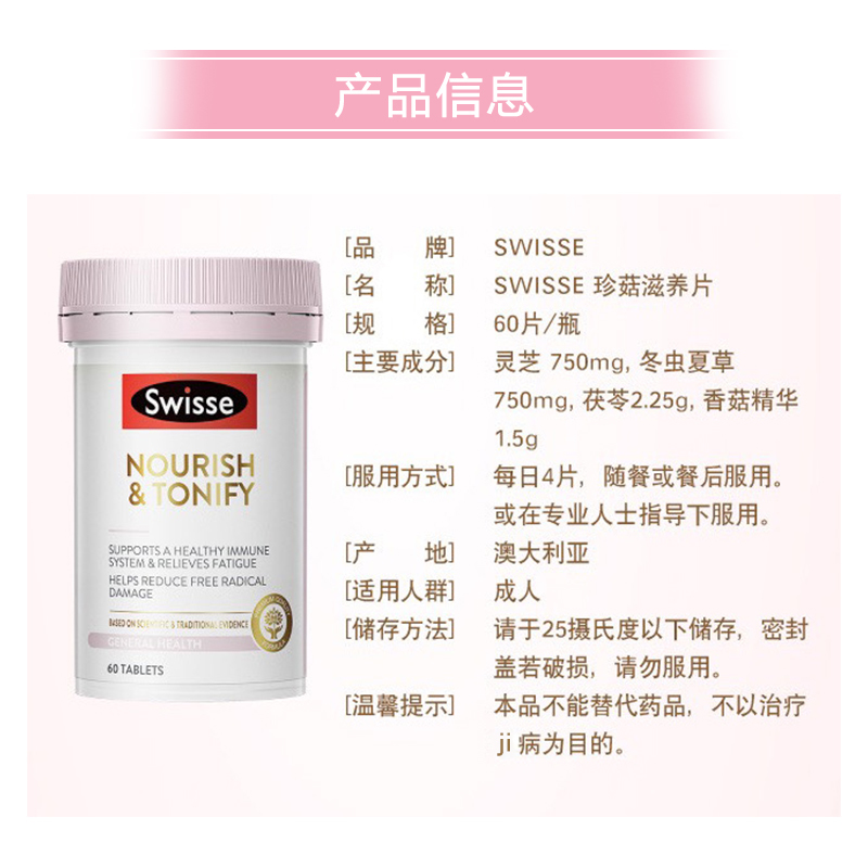 "缺货"【Swisse任意三件包邮】Swisse 珍菇滋养片(2022/8)