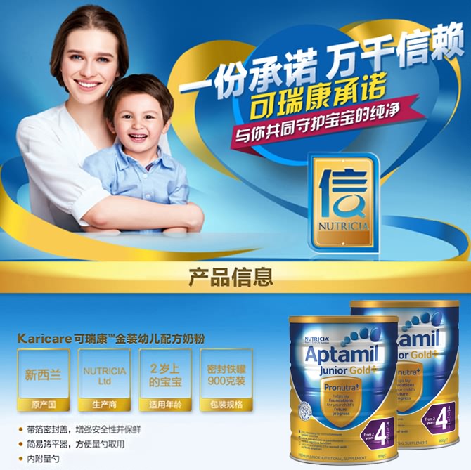 | 英文名称 | Karicare Aptamil Gold+ 4 Junior Nutritional Supplement From 2 years 900g |