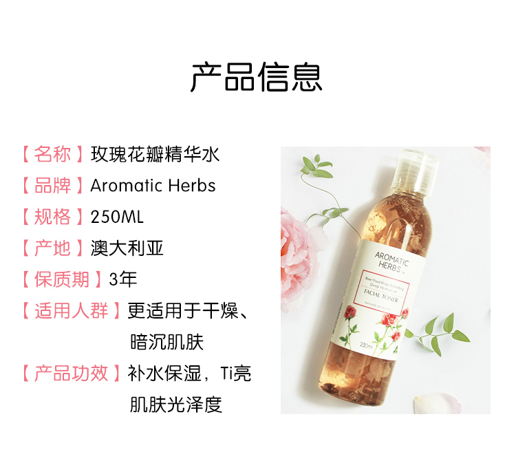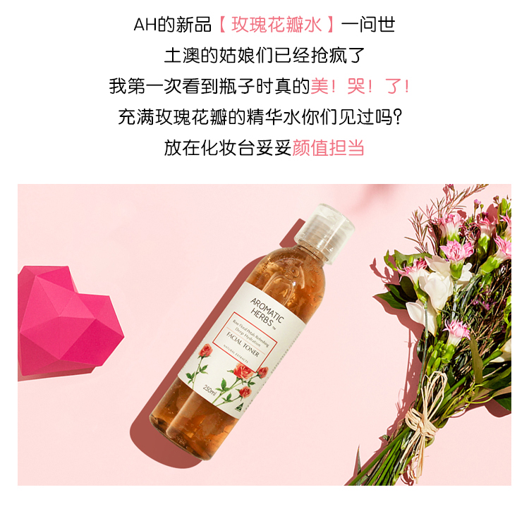 Aromatic Herbs玫瑰花瓣精华水保湿补水滋养细致毛孔爽肤水250ml