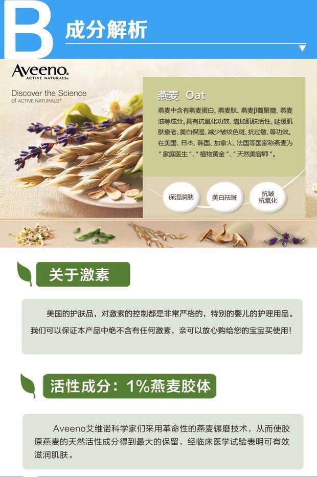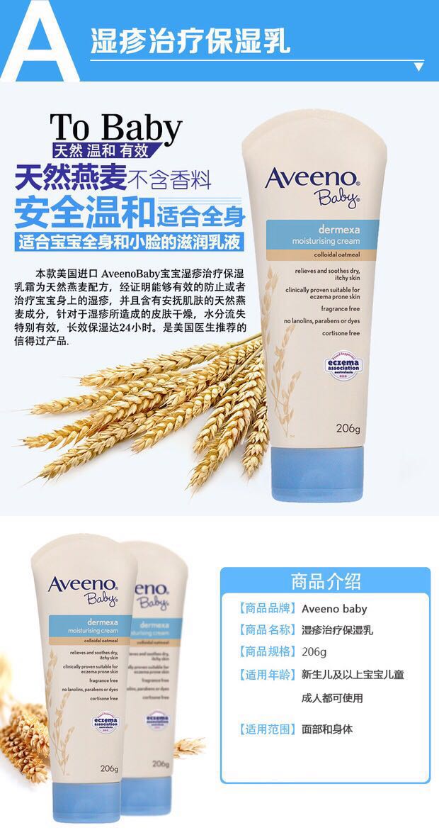 Aveeno Baby 新湿疹配方润肤露206g含有天然胶质燕麦成分,温柔呵护宝宝肌肤,24小时提供水润滋养。