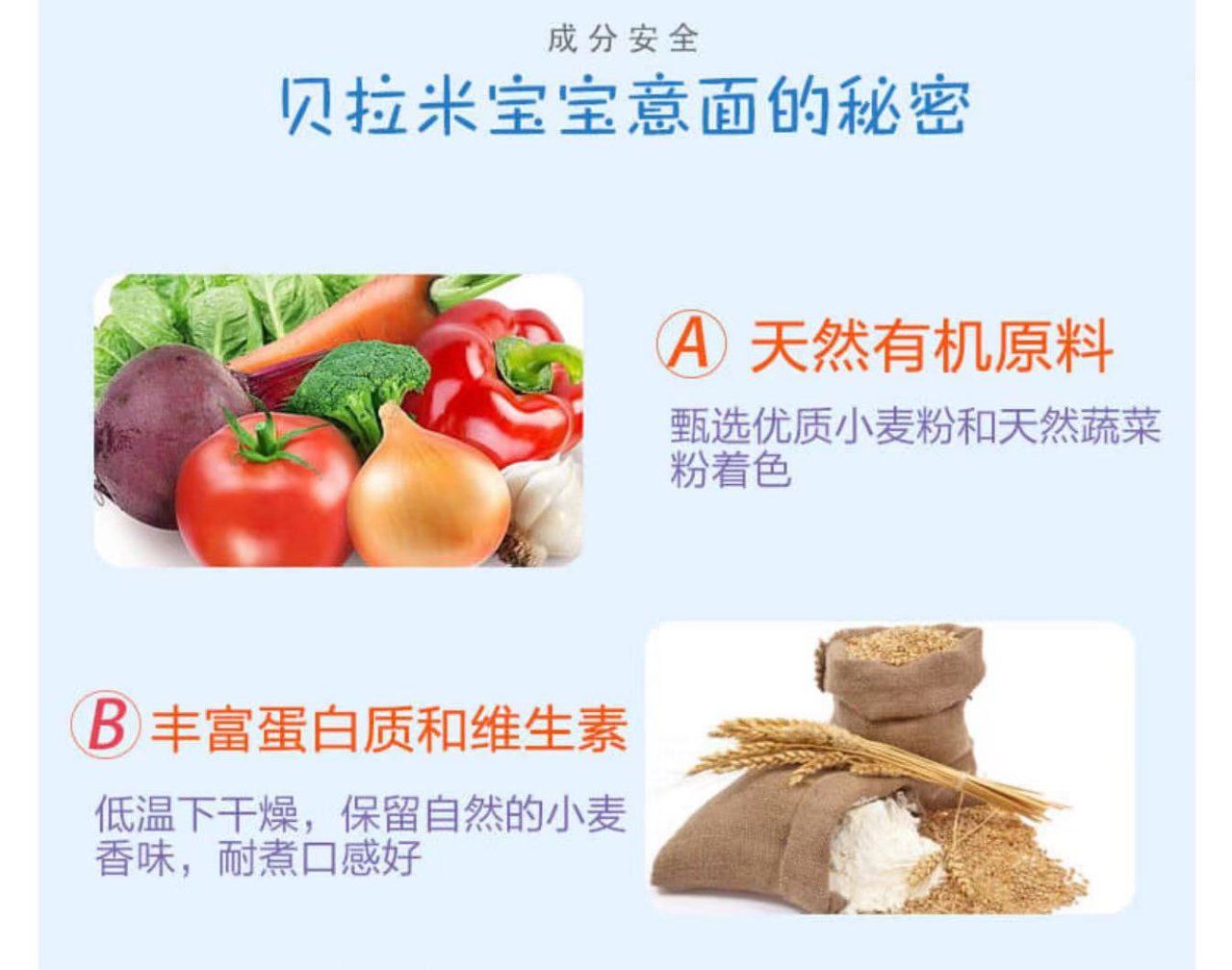 贝拉米有机蔬菜字母面,添加了对人体有益的铁元素,可以煮至熟软后食用,也能作为宝宝的手抓小点心。