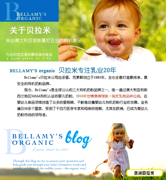 贝拉米是目前澳洲、新西兰认证的有机婴儿食品!