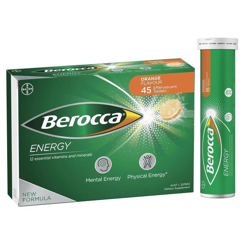 拜耳 Berocca 复合维生素能量泡腾片 橙子味45粒 补充维B维C