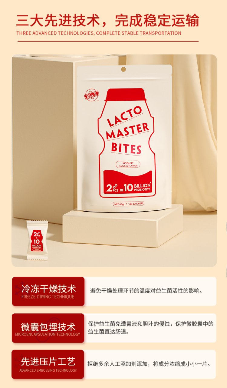 Bio-E 益生菌多多片 调理肠胃益生元咀嚼片 30粒