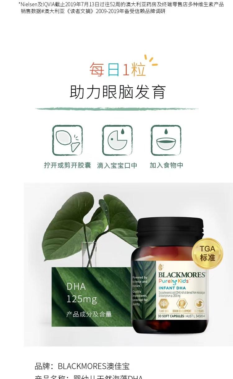 【运输途中高温天气,产品有融化风险,无法售后。建议走EWE】助力天才第一,步跑赢黄金1000天!BLACKMORES全婴新幼儿天海然藻DHA:含有Vitamin E结合RRR新配方胆碱+DHA黄金组增合强婴儿海体马发育,共协同助宝宝大脑及视发力育,效果加倍,给2周-2岁宝宝精准守多护一点。妈妈准早备,抓住黄金期