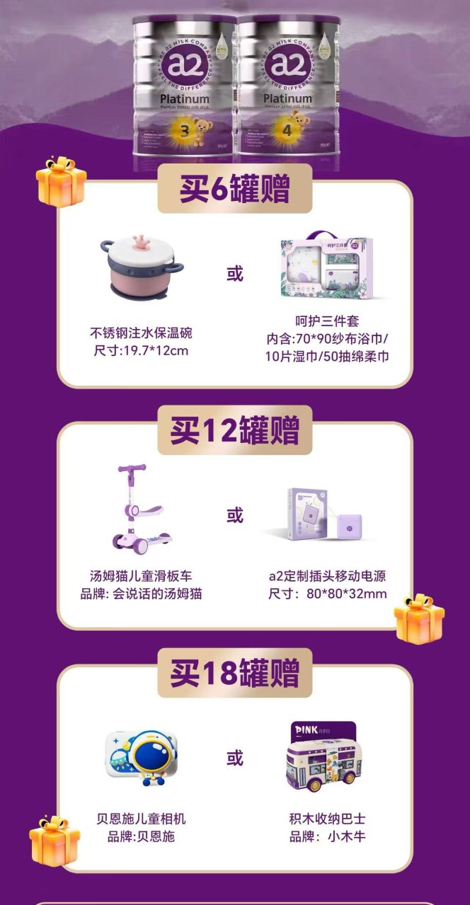 【品牌直发6罐包邮买赠活动】A2 Platinum 白金婴幼儿奶粉 3段 900g 新版 (1岁+)