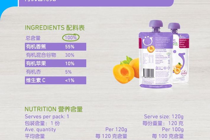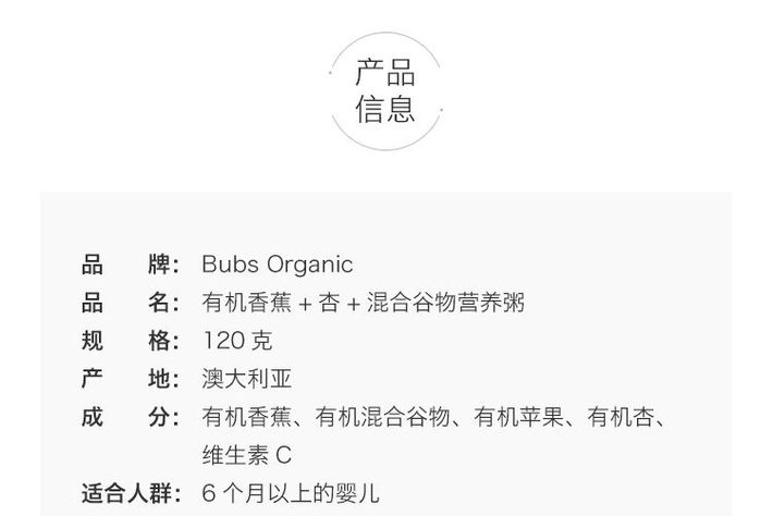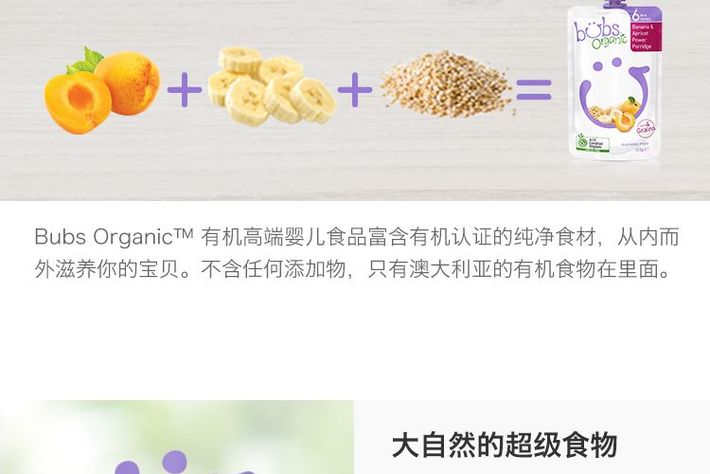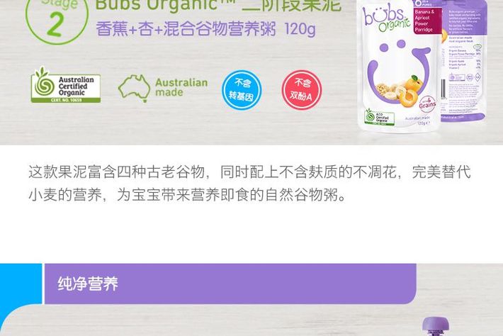 Bubs 有机婴儿辅食 香蕉+杏子麦片粥 6个月+ 120g