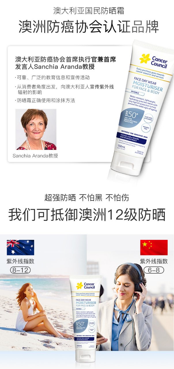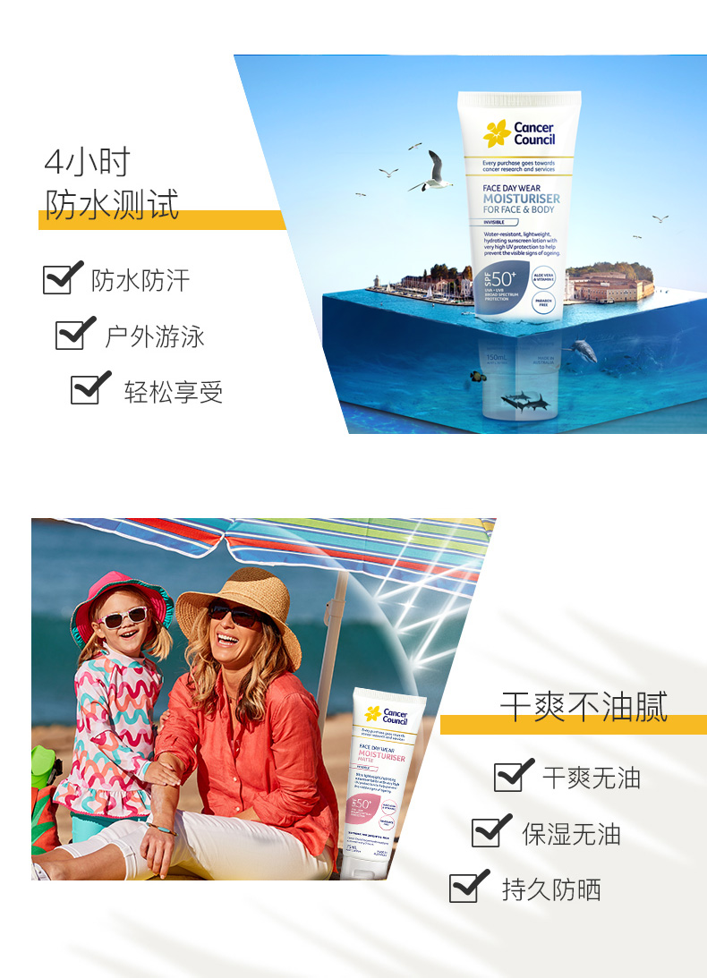 过期下架🉐Cancer Council 面部身体防晒霜隔离霜SPF50+ 保湿150ml 防水防汗 2025-06-30