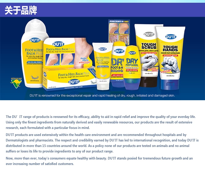 DU'IT Tough Hands是一个强力有效的配方,强效急救修复裂纹干燥手部皮肤,平衡皮肤油脂,在皮肤表层形成一个保护屏障,让手部皮肤达到一个最佳状态,针对各体力劳动导致手部粗糙、家务装修等频繁与化学物品接触造成的手部皮肤粗糙,对于真菌等引起的湿疹手癣也有显著效果!