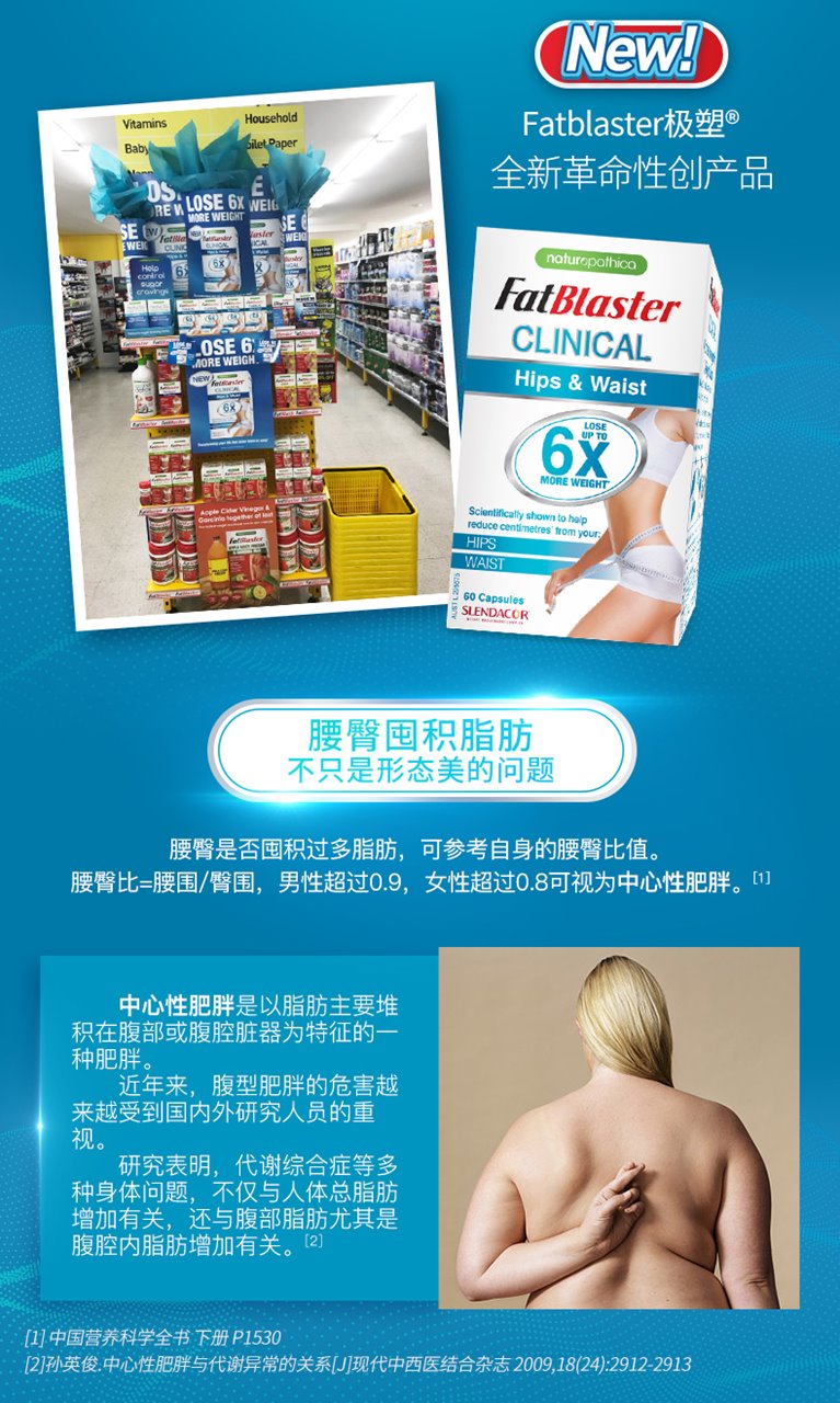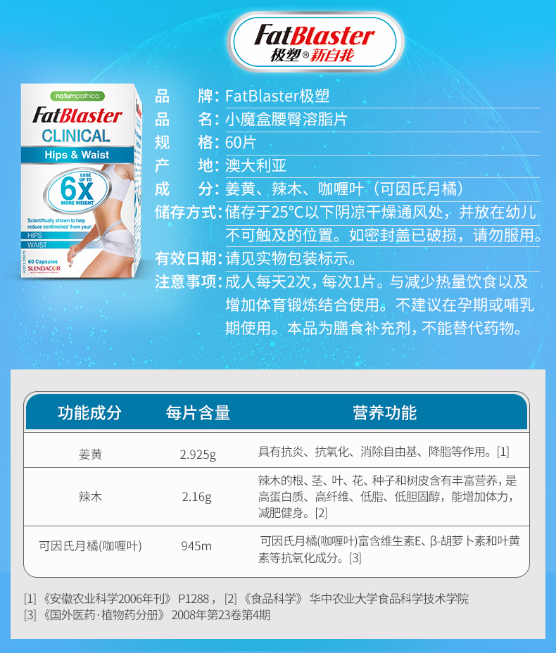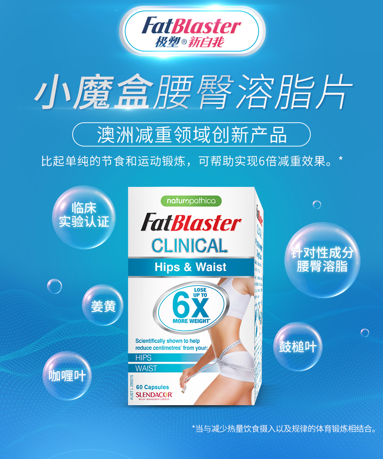澳洲fatblaster极塑小魔盒腰臀溶脂片60片6倍X减重吉克隽逸推荐