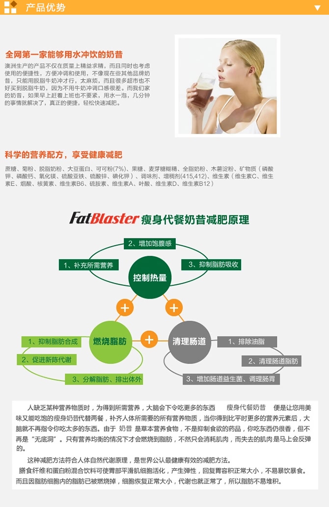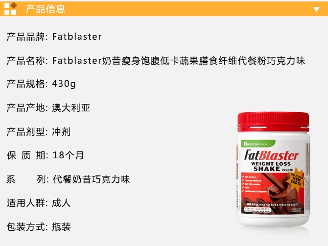 | 产品名 | Fatblaster 纤体瘦身代餐奶昔 巧克力味 430g |