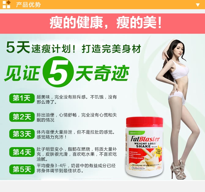 | 适用人群 | 15岁以上肥胖人群;不适合孕妇和哺育期妇女;本品仅限瘦身减肥期间使用,不可长期替代正常的膳食 |