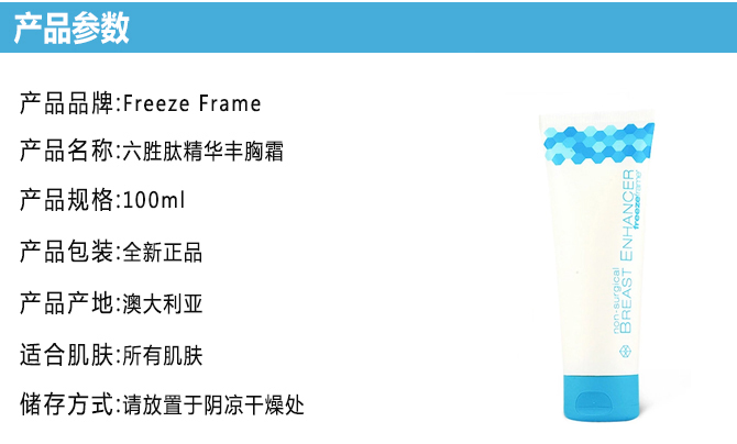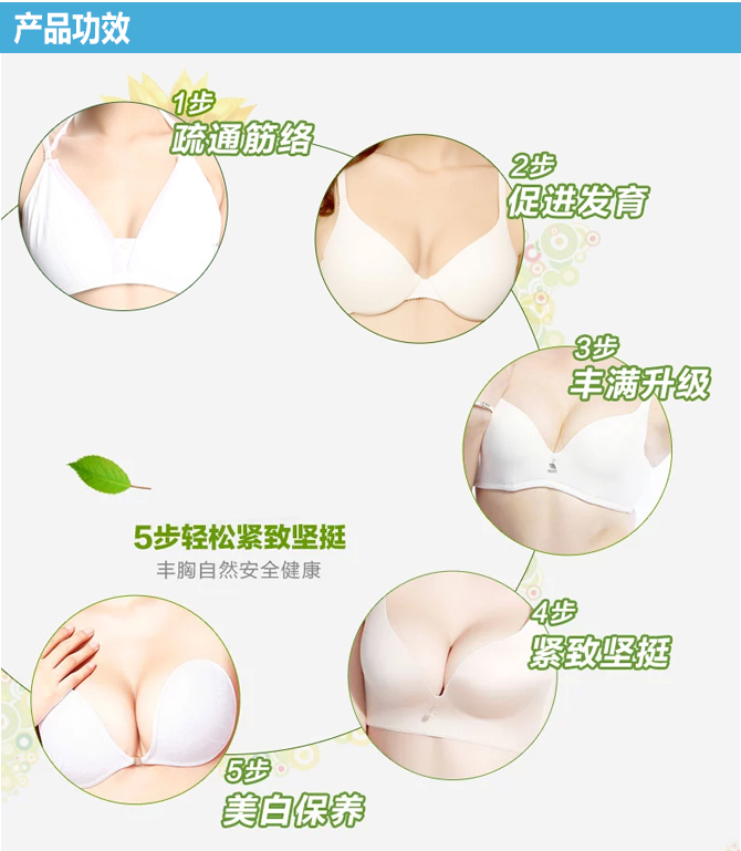 本产品是美丽与科技的完美结合,其全世界首创的非手术丰胸膏Breast enhancer独特的3合一配方经过大量临床验证可以有效使乳房变大,变挺,变得更加紧实,78%的使用者在28天内乳房有明显增大,部分使用者在28天内就可以从A罩杯到B罩杯,从B罩杯到C罩杯喔。 临床验证该丰胸膏可以有效的刺激乳房脂肪的生成从而达到丰胸的效果,试验数据显示在使用后5小时内乳房的脂肪生成数量提高了57%,在84天内可以增大乳房体积达到43%以上。但这些都不是这个产品的最独特之处,该丰胸膏最与众不同之处在于添加了专利生物肽成分