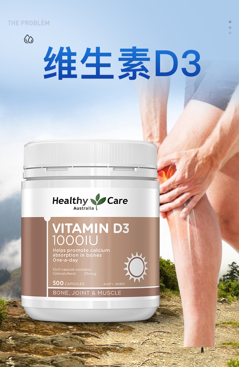 Healthy Care 维生素D3 1000IU 500粒 软胶囊促进钙磷吸收