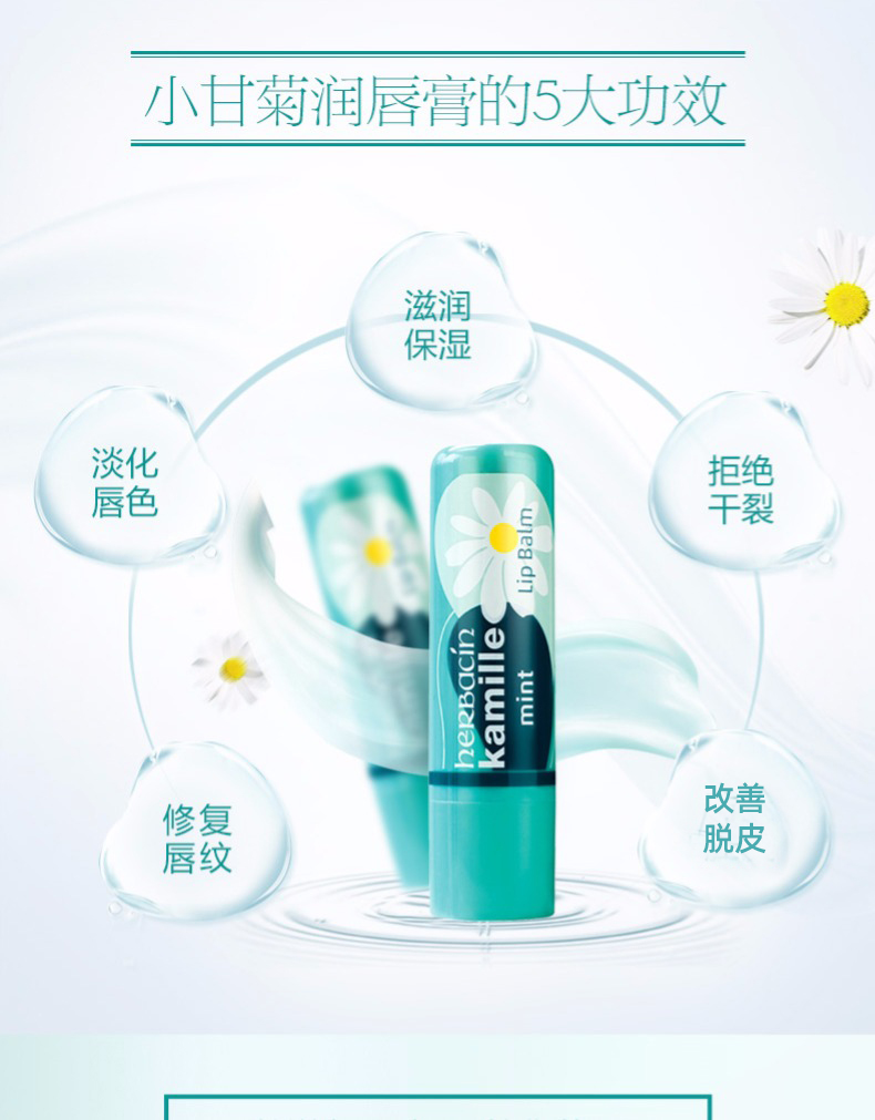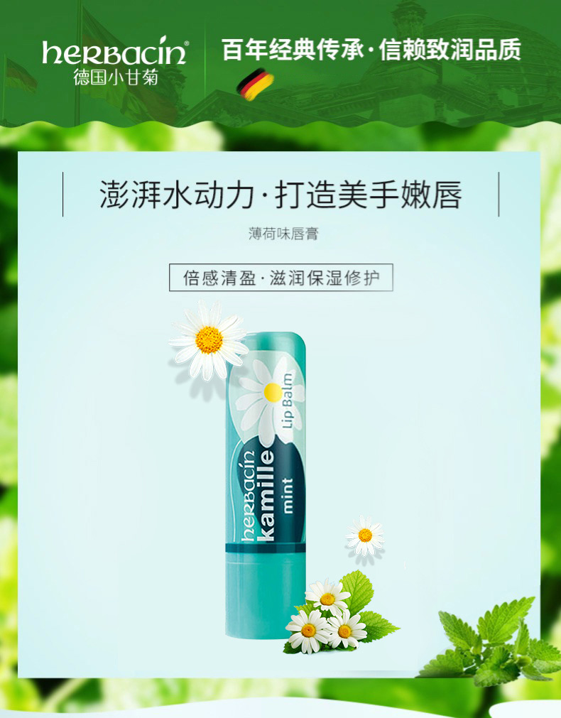 Herbacin 德国小甘菊护唇膏 薄荷 4.8g 保湿滋润补水淡化唇纹