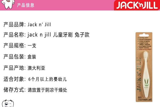 | 产品名 | Jack N' Jill 玉米淀粉有机儿童牙刷 兔子款 |