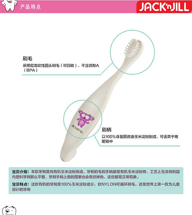 | 英文名称 | Jack N' Jill Bio Toothbrush (TM) Compostable & Biodegradable Handle BUNNY |