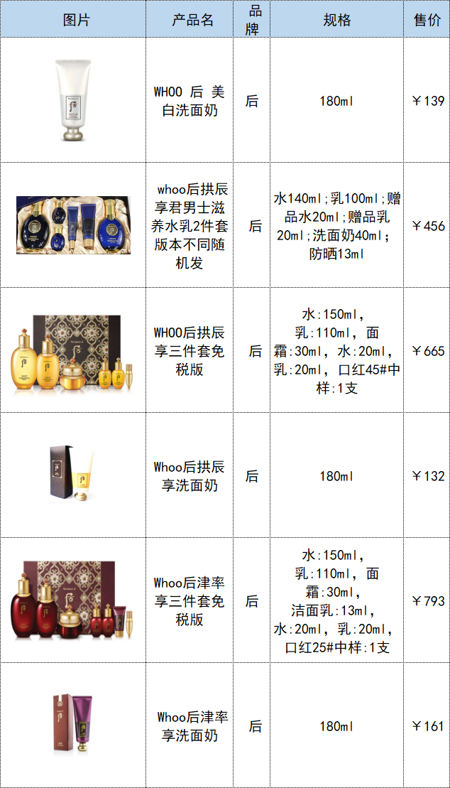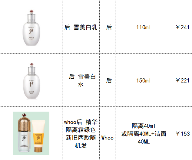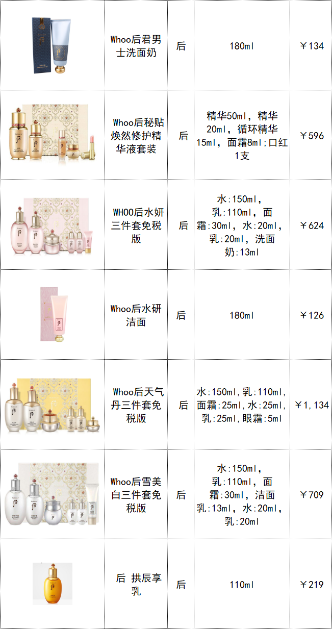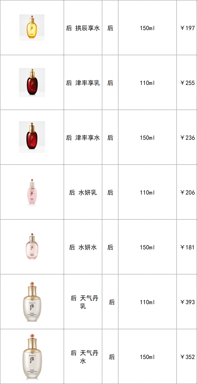 【韩国直邮】 Whoo后 产品价格一览 (本页面仅展示用 需微信下单)